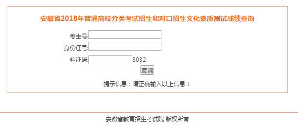 安徽省2018年普通高校分類考試招生和對(duì)口招生文化素質(zhì)測(cè)試成績(jī)查詢