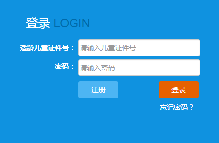 2.首次訪問本系統(tǒng)請點擊“注冊”按鈕,注冊賬號為適齡兒童證件號,再次訪問請點擊“登錄”按鈕。