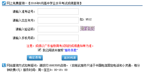 廣東省2016年6月高中學(xué)業(yè)水平考試成績(jī)查詢