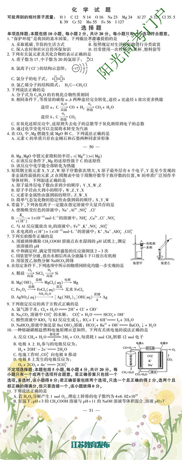 2016江蘇小高考化學(xué)試題答案